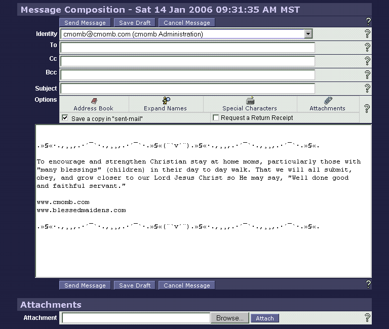 Composing is easy with features such as attachments, choosing identities/signatures and address book.
