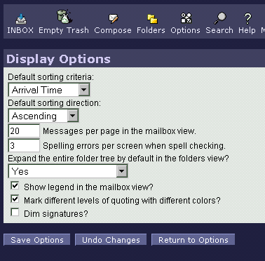 Here is one of the options sections, the display options. This is where the look and feel an be changed by the user.