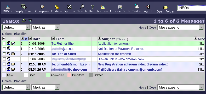 This is the Inbox folder. Messages are assigned different colors to help with quick reference.